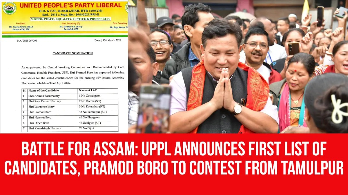 UPPL president Pramod Boro, elected unopposed to the Rajya Sabha, will contest the assembly elections from the Tamulpur constituency. UPPL general secretary Raju Kumar Narzary announced the first list of seven candidates, stating the party will compete in all 15 constituencies in the Bodoland Territorial Region (BTR), with a second list to follow soon. UPPL is a constituent of the NDA alongside their main rival, the Bodoland People’s Front (BPF). In the recent Rajya Sabha polls, Boro was the NDA candidate, elected alongside BJP’s Jogendra Mohan and Terash Gowala. Narzary will run from Dotma, while incumbent MLA Lawrence Islary has been re-nominated for the same seat. Other candidates include former ABSU president Dipen Boro for Udalguri, three-time former MLA Kamalsing Narzary from Bijni, Aninda Basumatary from Gossaigaon, and Nereshon Boro from Bhergaon. UPPL currently holds seven seats in the 126-member assembly, with Handloom and Textile Minister Urkhwa Gwra Brahma in the state cabinet.